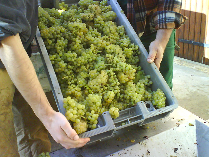 La récolte est acheminé à la cuverie dans des petites caisses afin de préserver le grain de raisin. Celles-ci sont déversées dans un fouloir/pompe pour libérer les premiers jus, faciliter le pressurage et envoyer les raisins dans le pressoir. Le pressurage va durer de deux heures et demi à trois heures dans un pressoir pneumatique horizontal d'une capacité de 25hl. Le jus de raisins pressés, c'est à dire le moût, est stocké en cuve pendant deux jours à une température de 8°C.